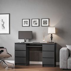 Компактный компьютерный стол «СТК 1» со столешницей размером 822*493 мм. С одной стороны столешница опирается на открытый стеллаж размером 150*734*460 мм с двумя полками. С другой стороны столешница пристыковывается к открытому пеналу размером 328*1026*296 мм также с двумя полками.