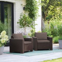 С ранних утренних часов до позднего ночного времени Вы можете отдыхать и расслабляться в комфортном кресле Калифорния. Стильная текстура, имитирующая ротанговое плетение, исключительно широкие подлокотники, подушки сиденья и спинки - благодаря им это кресло идеально подходит для того, чтобы отдыхать в летний день. А поскольку оно изготовлено из устойчивого к погодным условиям пластика с защитой от ультрафиолетового излучения, Вы будете им наслаждаться на протяжении многих сезонов, не заботясь об уходе.